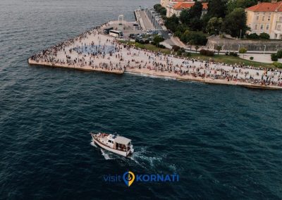 Erleben Sie die Magie des adriatischen Sonnenuntergangs auf einer privaten Bootstour ab Zadar. Wenn die Sonne langsam im Meer versinkt, verwandelt sich der Himmel in ein Gemälde aus Gold und Purpur, während die ruhigen Wellen das letzte Licht widerspiegeln.