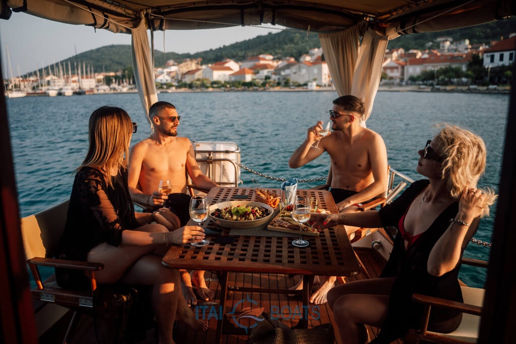 Genießen Sie ein Glas edlen lokalen Weins und köstliche dalmatinische Spezialitäten, die mit Liebe und Tradition zubereitet werden. Umgeben vom sanften Rauschen des Meeres und der warmen Abendbrise bietet diese Kreuzfahrt die perfekte Kulisse für Romantik, Entspannung und unvergessliche Momente.